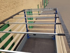 Дальше производится установка самого механизма. С этой целью производится разбор верхней обвязки. К ровным боковым стойкам с помощью специального переходного крепежа присоединяются направляющие из стали или алюминия, называемые «лыжами». По ним и будет перемещаться сдвижная крыша. После надёжной фиксации направляющих производится установка сдвижного механизма и натяжение тента. При этом должно быть предусмотрено застопоривание перемещения тента по направляющим в двух точках – когда полуприцеп закрыт тентом и когда тент сложен. Как только тент пристёгивается ремешками к направляющим, сдвижная крыша готова к эксплуатации.