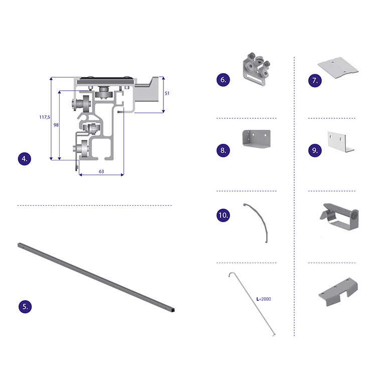 - BCSLS.11/S/H — Задняя каретка (высота: 110, 160, 220)