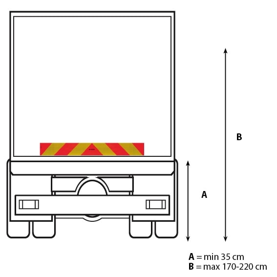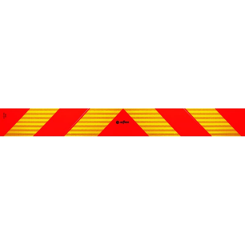Знак ТСБГ в виде полосы размером 1300х130х1 наклеивается на заднюю часть фургонов, полуприцепов, прицепов грузоподъемностью более 5 тонн. Знак двухцветный, с микропризматической структурой, отражающей свет фар. Благодаря знаку другие участники движения видят габариты даже в условиях плохой видимости. У наклейки алюминиевая основа, придающая износостойкость.