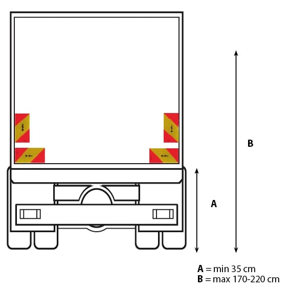 Знак ТСБГ размером 285х130х1 крепится на грузовые машины грузоподъемностью более 5 тонн. Наклеивается на заднюю часть фургона, прицепа, полуприцепа и позволяет другим участникам движения видеть машину даже в условиях плохой видимости. Знак имеет микропризматическую структуру, что делает его видимым в свете фар. Наклейка имеет алюминиевую основу, обеспечивающую износостойкость.