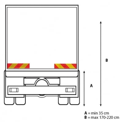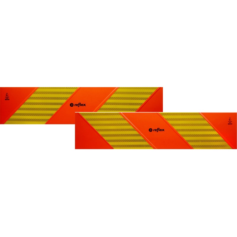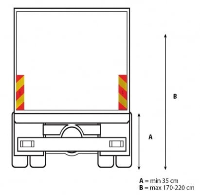 Знак ТСБГ размером 500х130х1 крепится по бокам на заднюю часть фургонов, полуприцепов, прицепов грузоподъемностью более 5 тонн. На знаке перемежаются диагональные полосы двух цветов. У него микропризматическая структура, отражающая свет фар, из-за чего другие участники движения хорошо различают фуру даже в условиях плохой видимости. У знака прочная и долговечная основа из алюминия.