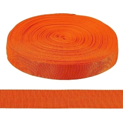 Лента текстильная для стяжных ремней 35 мм оранжевого цвета выдерживает нагрузку на разрыв до 3000 кг. Это полоса высокой плотности, сплетенная из прочного полиэстера. У неё минимальный коэффициент удлинения, она не растягивается, держит форму. Материал влагостойкий, может использоваться при любой температуре воздуха. Лента ярко окрашена и долго не выцветает. Используется для закрепления разнообразных грузов при транспортировке.